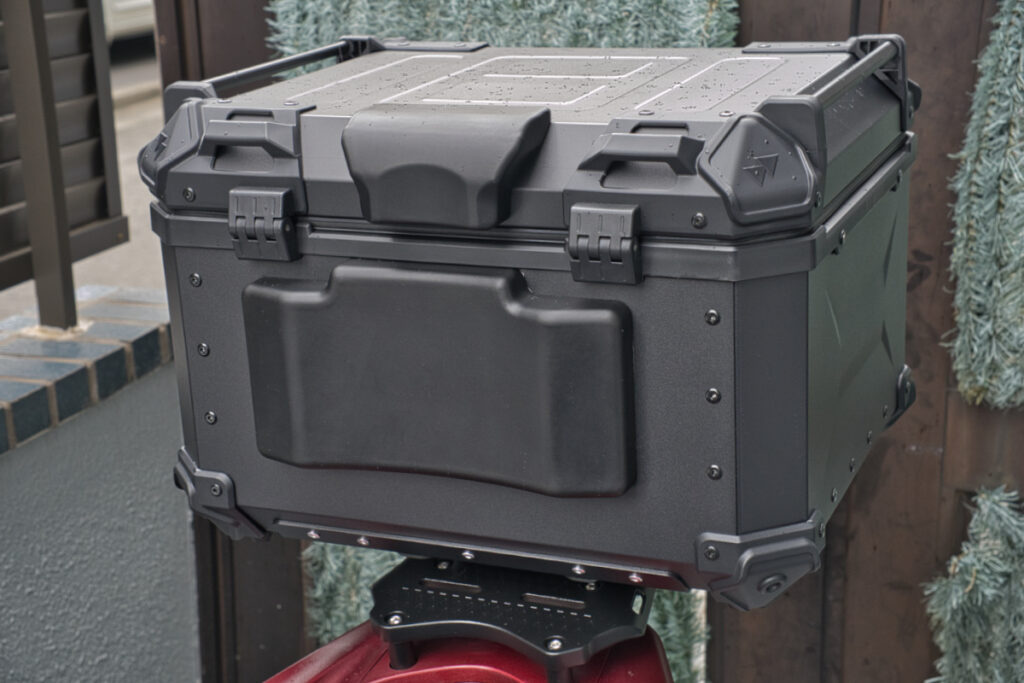 PCXのリアボックスにはONESTEP55Lを使用しています。こちらのボックスは大雨が降ってきた場合でも本体内部への浸水というのは一切なく、商品を濡らしてしまったりすることはありません。