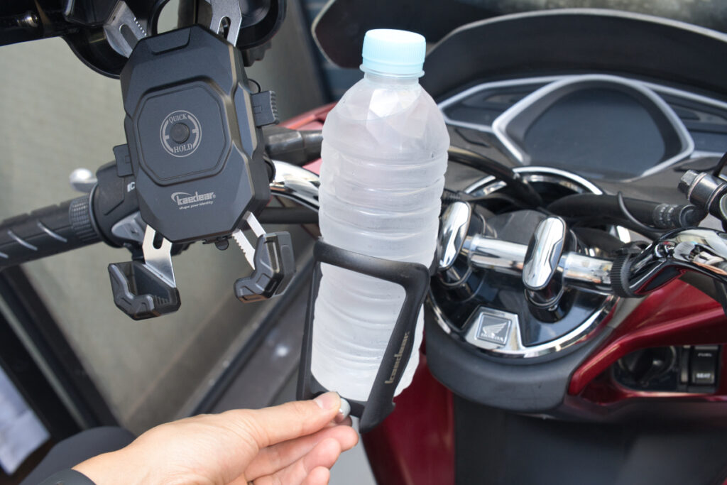 真夏の配達時はとにかく喉が渇くので、ドリンクホルダーは必須のアイテムかと思います。