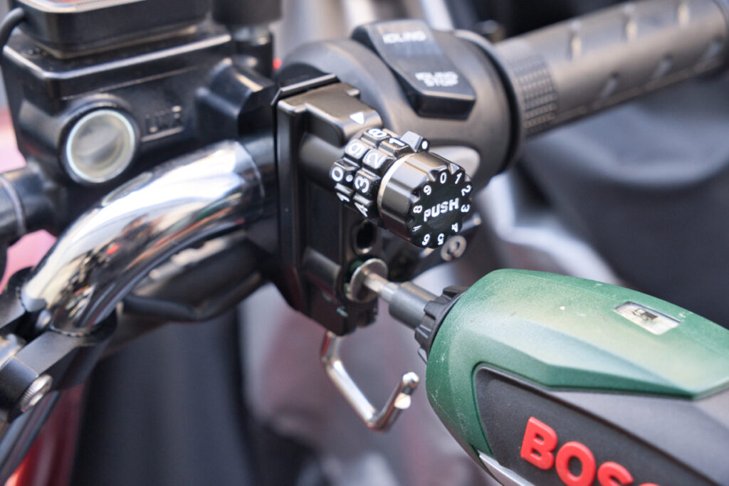 バイク配達をしていてショッピングモールに入る際にヘルメットを外すことがよくあるのですが、ヘルメットを盗難されることが怖いのでデイトナのヘルメットロックを装着しています。