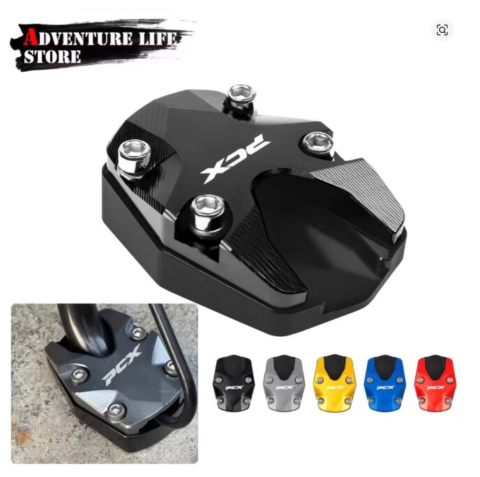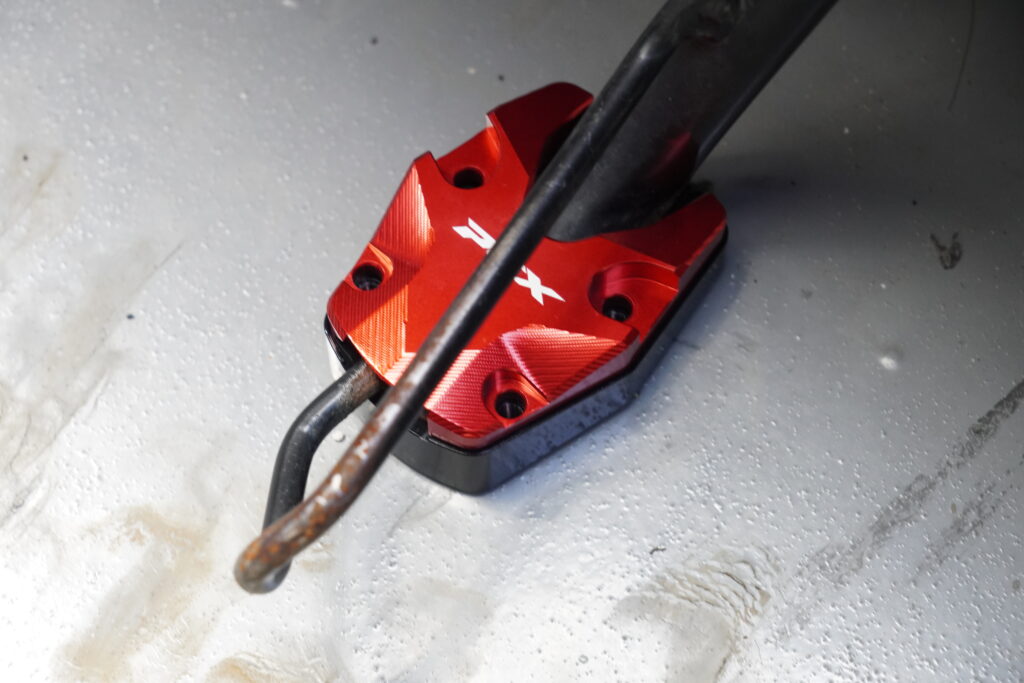 Aliexpressで購入したサイドスタンドプレートを使用することでPCXを傾けすぎずに駐輪することができるだけでなく、スタンドの底面がゴム製となっているため床を傷つけない機構になっているのもメリットとなっています。