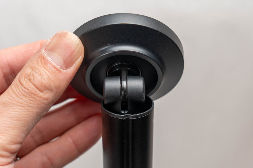 三脚を使用する際ですが、底の部分を床に押し当てることで「パッ」と簡単に三脚を設置することが可能な作りとなっていました。