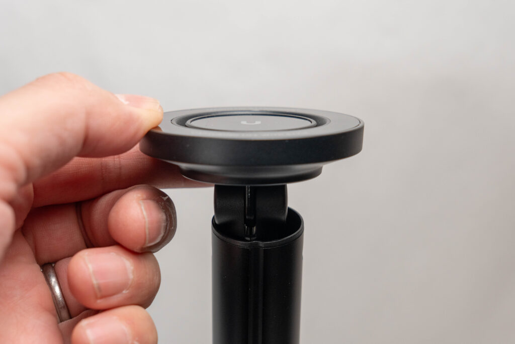 KraftGeek JustTap マグネネティックフォン三脚を実際に手に取ってみたところ、しっかりとした重みがあり、安定感のある作りになっていました。