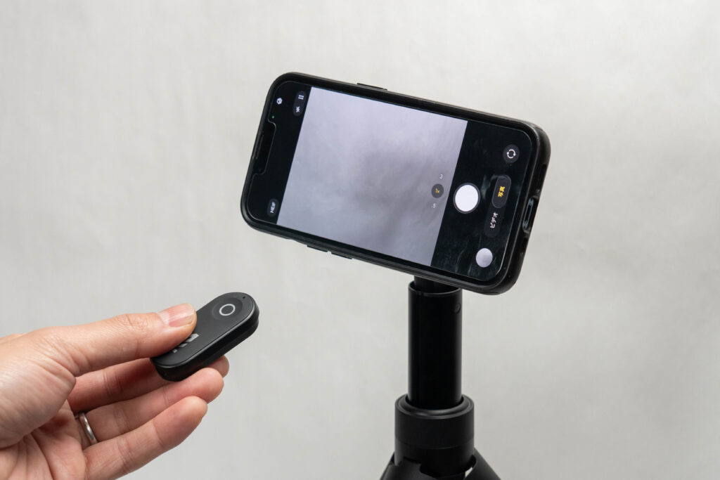 使用する際は三脚本体からリモコンを取り出し、電源ボタンを長押しして起動し、スマホからカメラアプリを立ち上げてボタンを押すだけで簡単に撮影をすることができます。