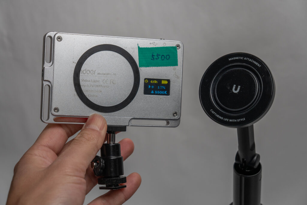 KraftGeek JustTap マグネティックフォン三脚に同梱されているプレートですが、モバイルライトに使用することで手軽に照明を立てることができるようになりました。