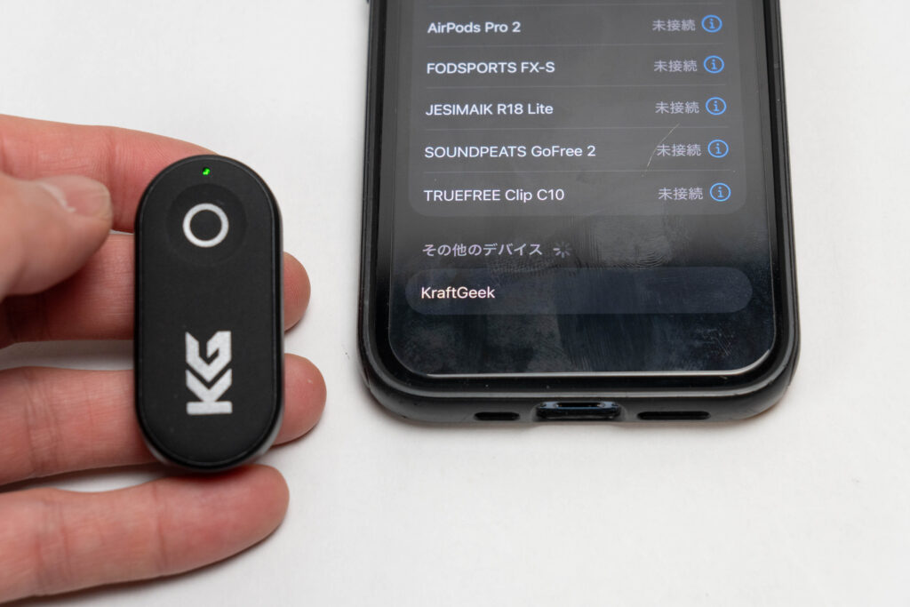 KraftGeek JustTap マグネティックフォン三脚のリモコンですが、お使いのスマホとBluetoothペアリングをすることでリモコンを使った撮影が可能となります。