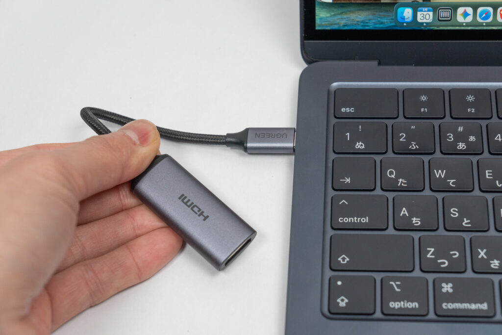 M4 MacBook AirにはHDMI端子が標準で装備されていないため、HDMIを使用する際は必ず外付けのインターフェースが必要となります。