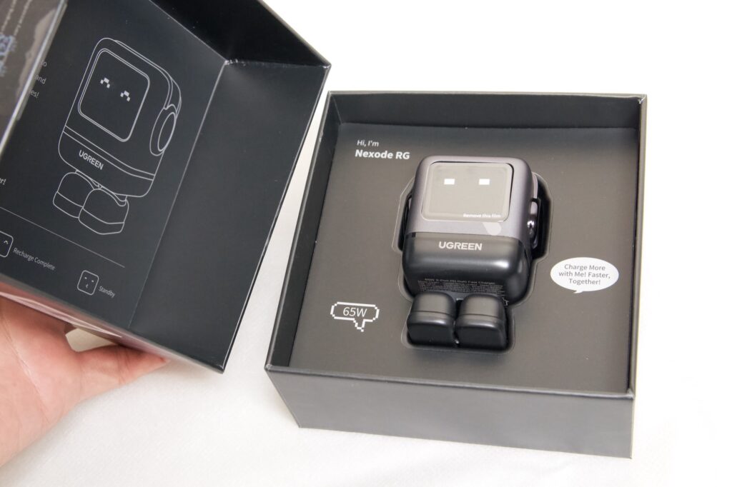 そのため持ち出し用の充電器として65Wのモデルがサイズや重さが適正だと言われており、Ugreenの65W充電器であればデザインも可愛らしく気軽に持ち出しやすいサイズ感となっています。