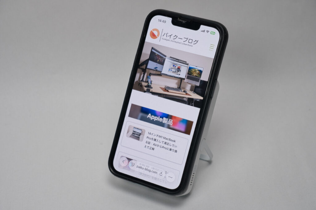 ICEMAG 2 モバイルバッテリーにはスタンド機能が付属しており、iPhoneを充電しながらブラウジングや動画の視聴が可能です。
