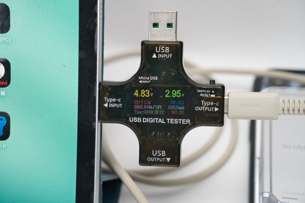 Qi2無線充電で15W、USB TypeCでの有線充電で15Wの合計30W出力を計測