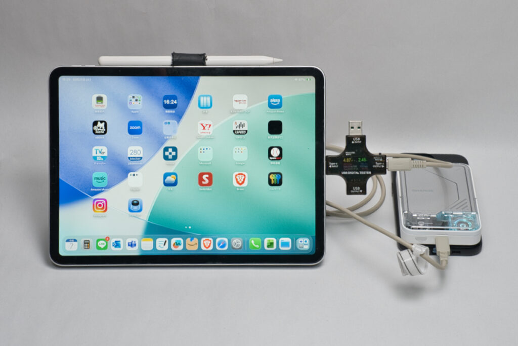 試しにiPhone13ProとiPad Proを接続してみたところ、iPhoneは15W充電、iPadも15Wでの充電出力を計測しました。