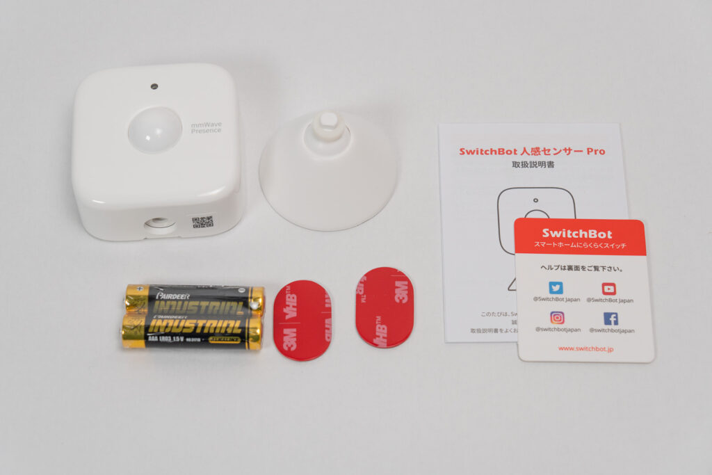 SwitchBot 人感センサーProの同梱物については、以下のとおりです。