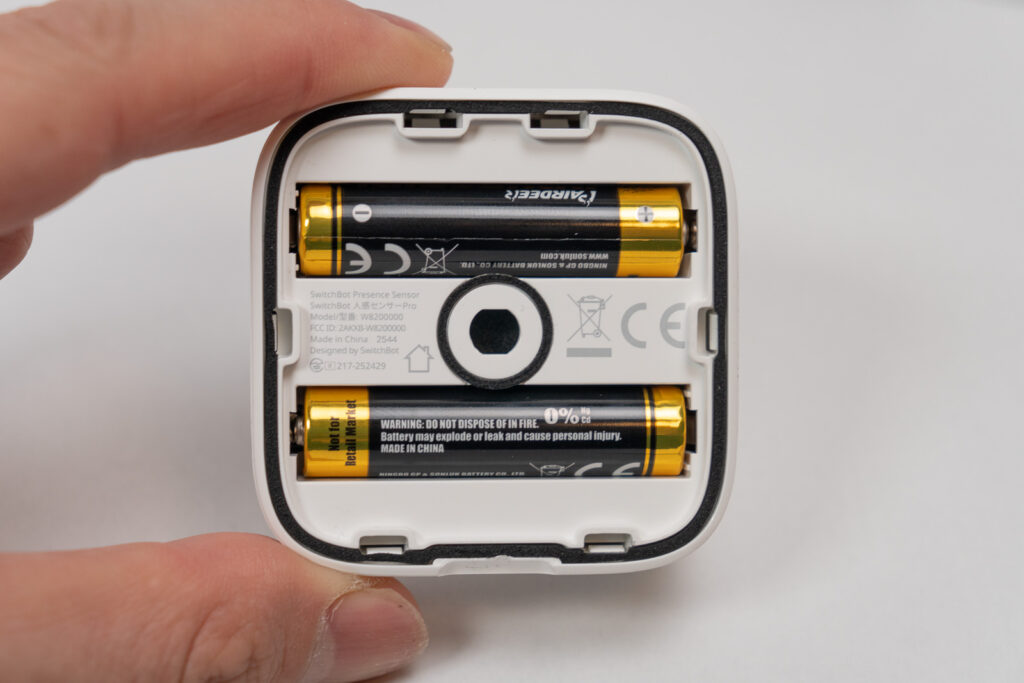 SwitchBot 人感センサーProですが、付属されている単4電池2本を使用することでおよそ2年間電池交換が不要な作りとなっています。