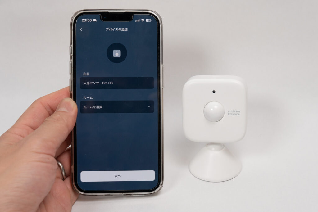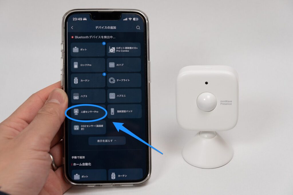 SwitchBot アプリを起動し、人感センサーProを登録していきます。