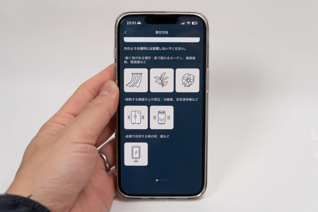 - 人感センサーの位置を変更することで、自宅内のライトや外出時のオートメーション機能など、様々な運用方法も可能