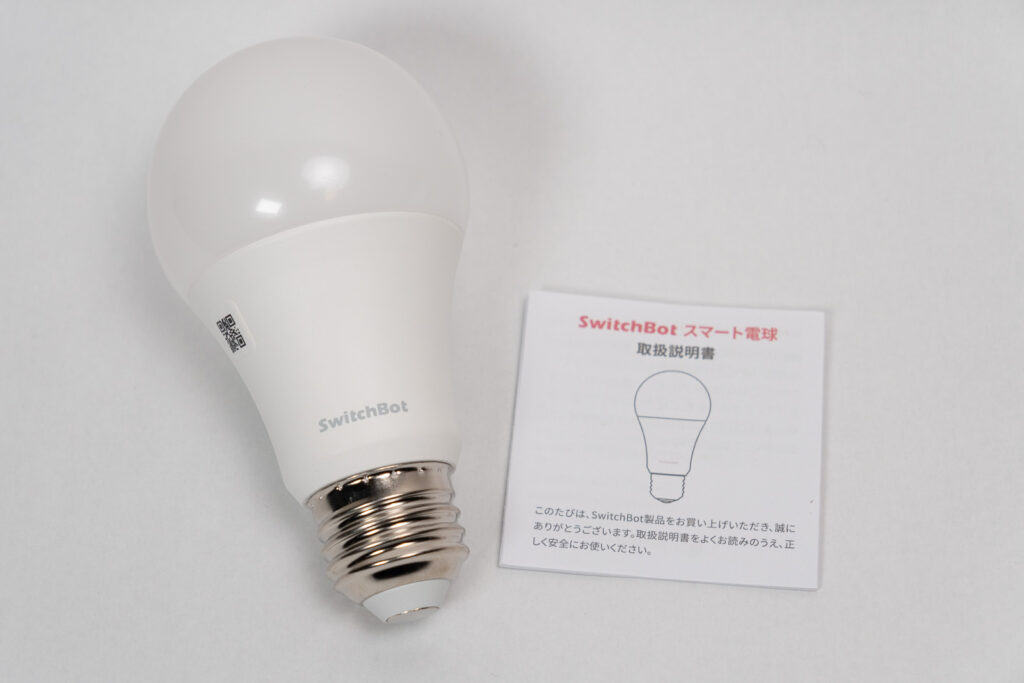 SwitchBot スマート電球の同梱物についてですが、スマート電球と取扱説明書のみとなっておりました。