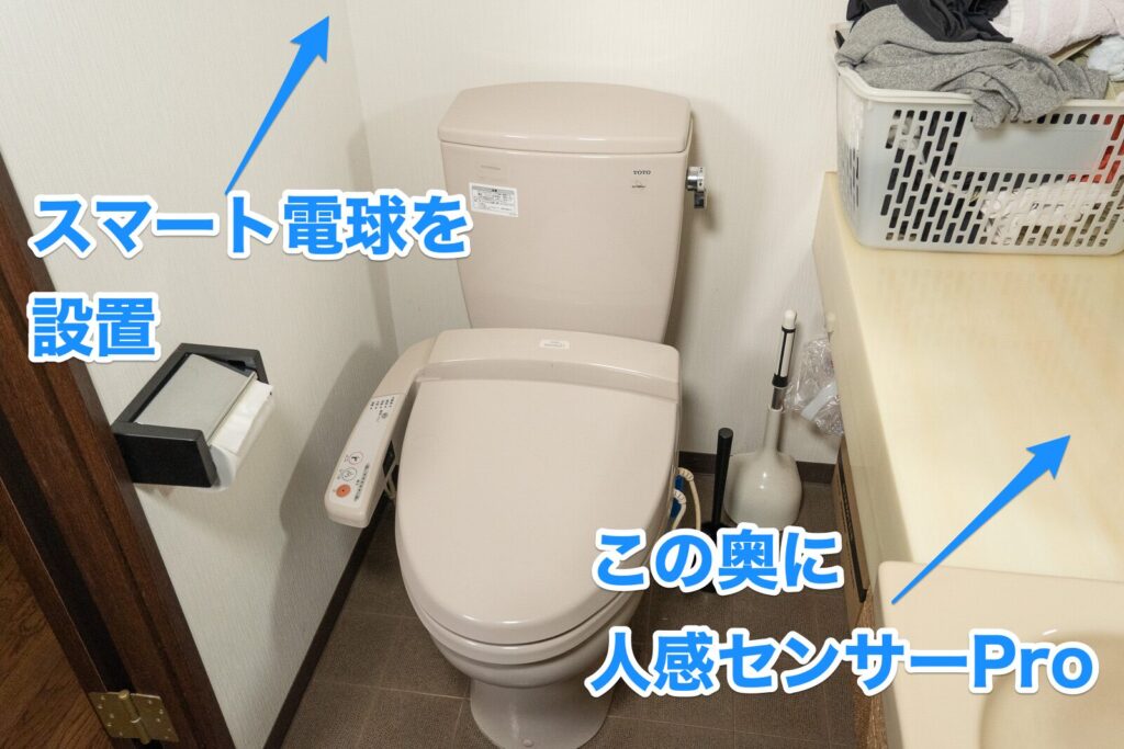 今回SwitchBot 人感センサーProとスマート電球を設置する場所ですが、筆者の自宅のトイレ 兼 洗面所 兼 脱衣所です。