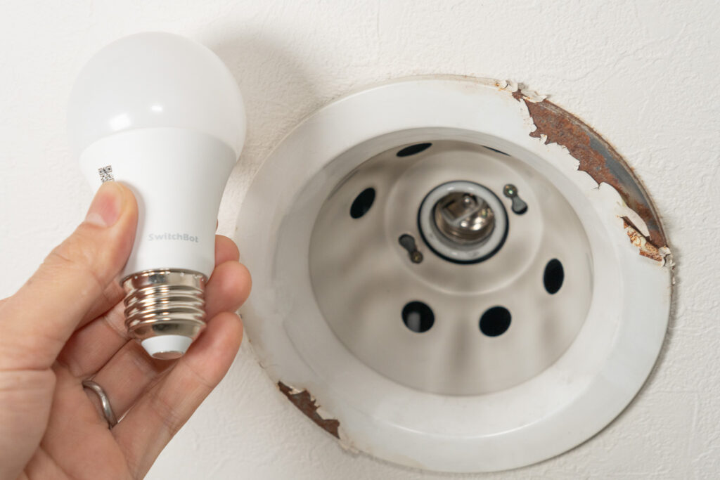元々使用していた電球を外し、今回のスイッチボット、スマート電球に交換を行っていきます。