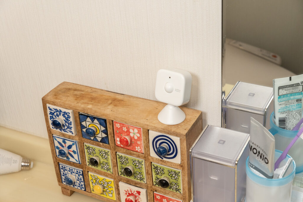 今回筆者は、トイレの入り口近くにある小物入れの上に設置をしてみることにしました。