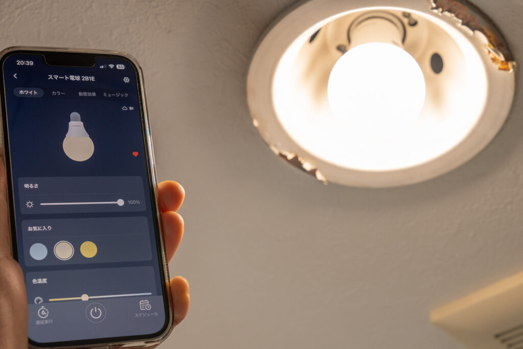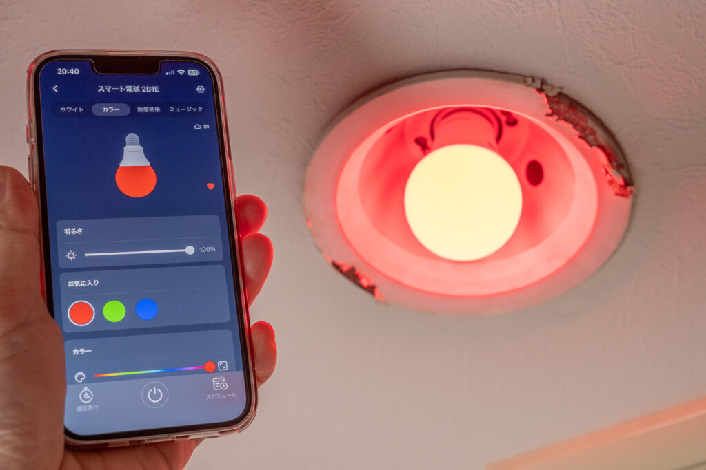 スマート電球をアプリに登録することで、電球の明るさや色温度、カラーの変更が可能です。