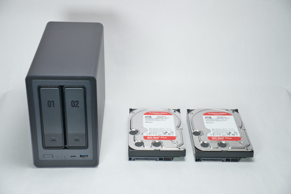 筆者が使用しているHDDはWD(ウエスタンデジタル)社製のNASモデルで、4TBを2枚導入してリダンダントシステムを構築しています。