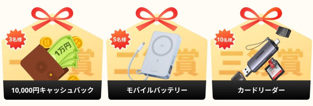 - 期間中にUGREEN NASを購入すると抽選でプレゼントが当たるかも